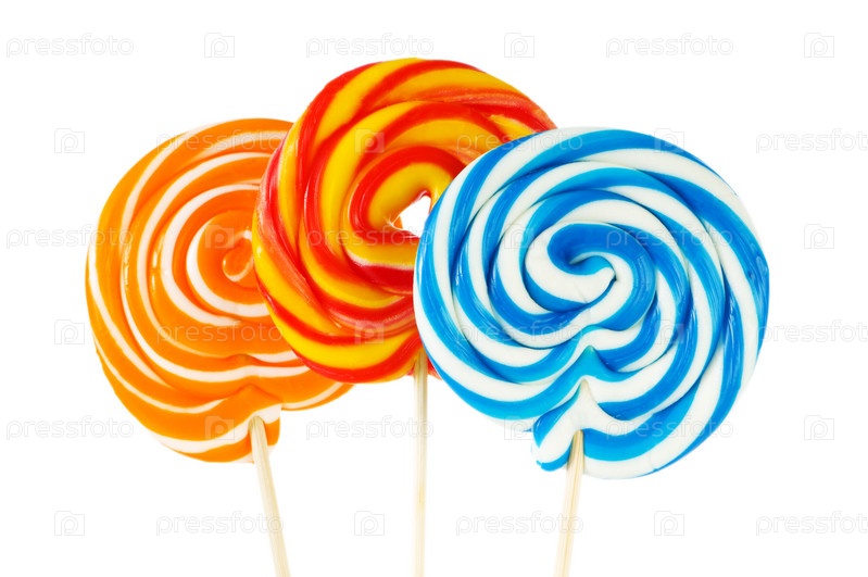 Красочные леденцы на палочке на белом фоне