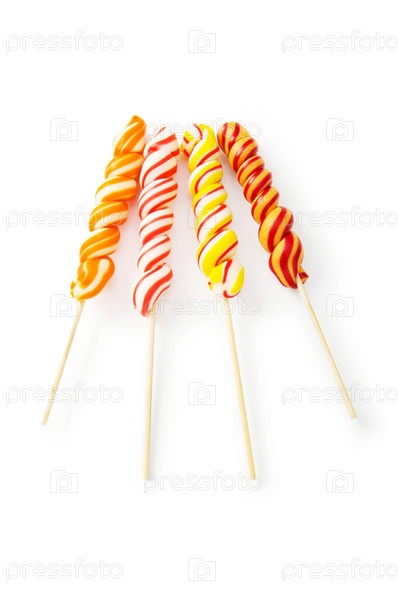 Красочные леденцы на палочке на белом фоне