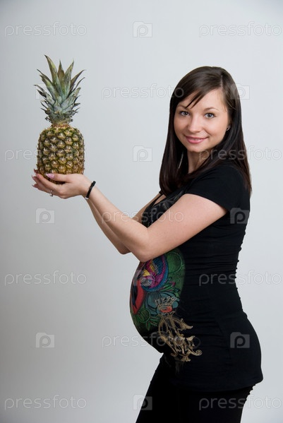Беременная женщина с ананасом
