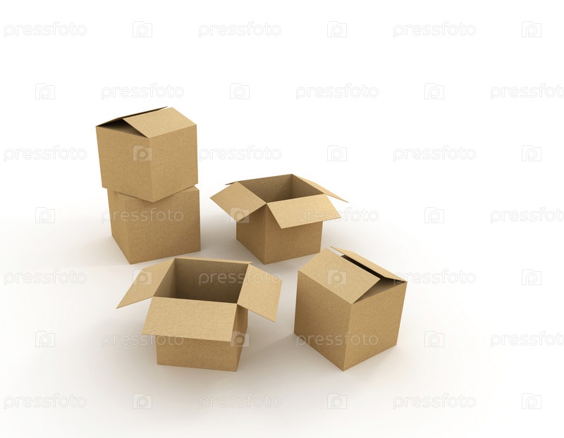 Картонные коробки на белом фоне