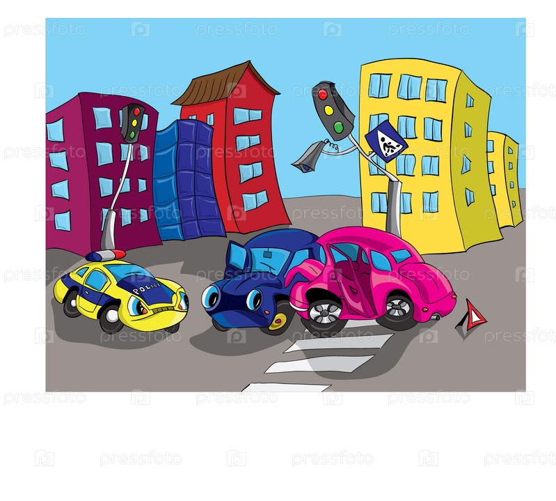 Автомобильная авария на улице города, иллюстрация