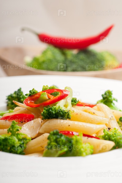 Итальянские макаронные изделия пенне с брокколи и перцем чили