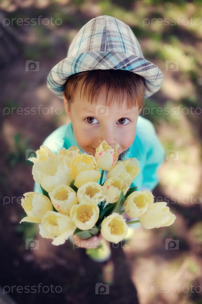 Ребенок с тюльпанами