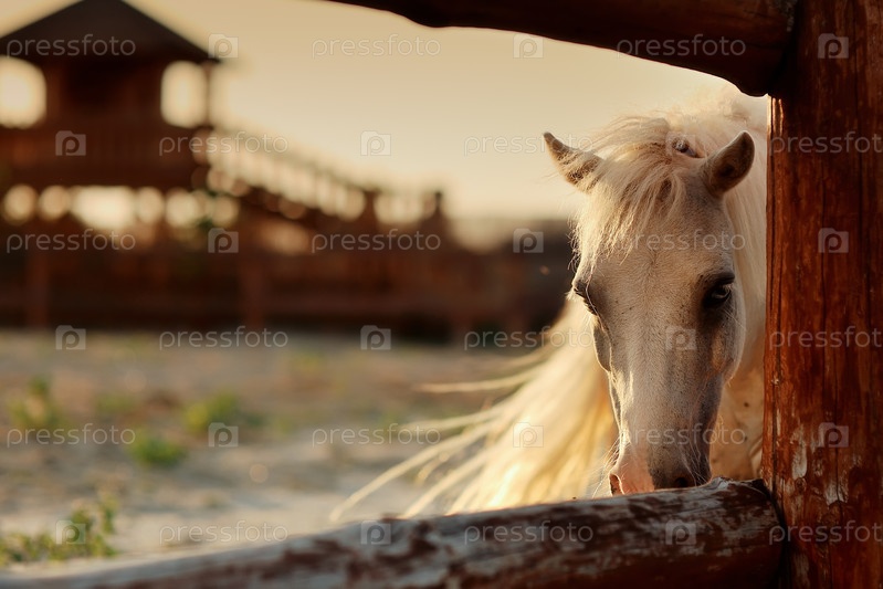 Белый конь на ранчо