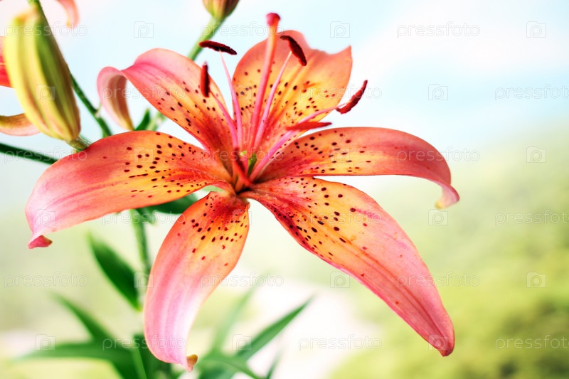 Красивая яркая лилия на фоне природы