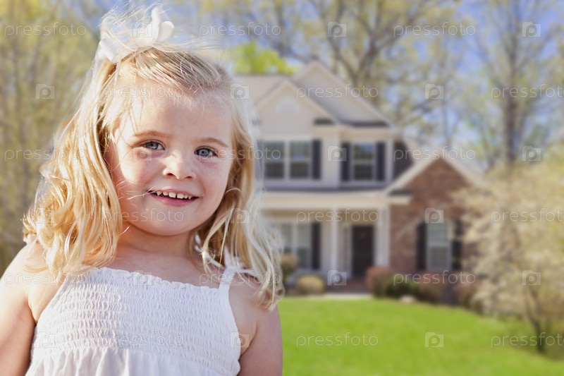 Милая улыбающаяся девочка играет в дворе