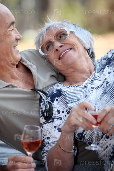 Пожилые люди пьют вино