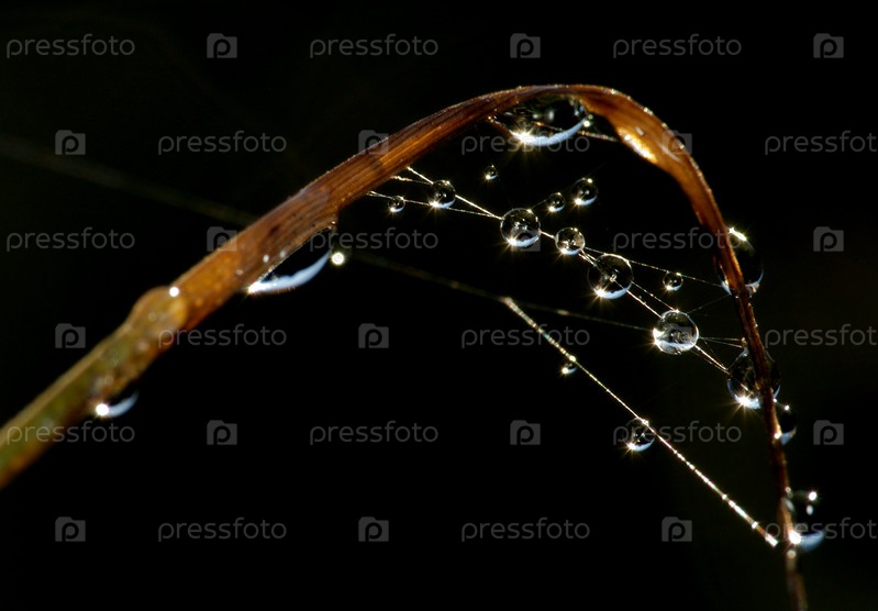 Капли росы на паутине рано утром