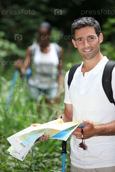 Пара с картой в горном походе
