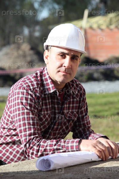 Инженер с планами на площадке