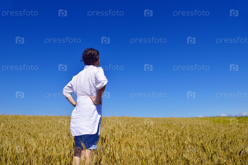 Молодая женщина на пшеничном поле летом