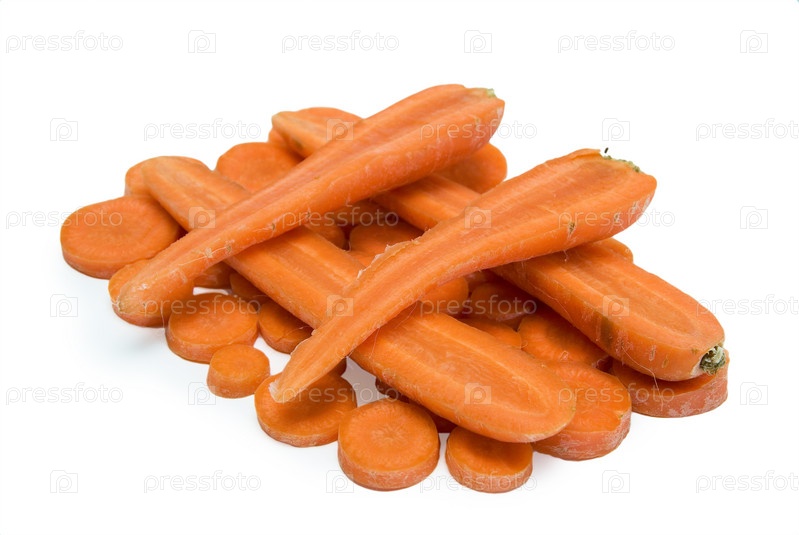 Нарезанная ломтиками морковь на белом фоне