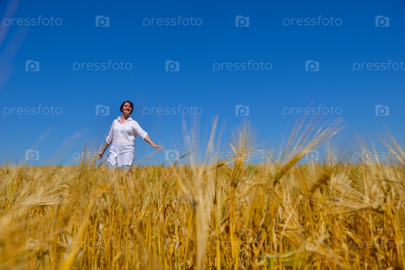 Молодая женщина на пшеничном поле летом