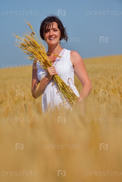 Молодая женщина на пшеничном поле летом