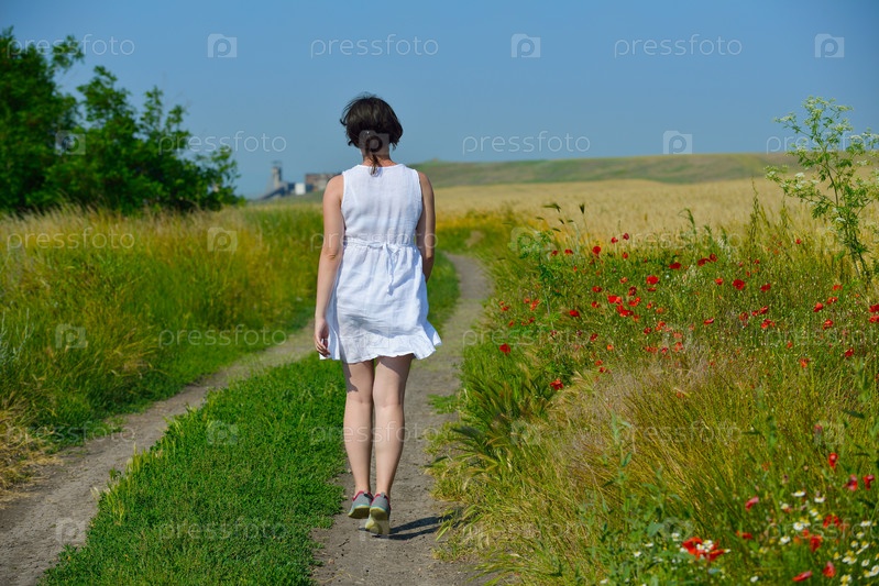 Молодая женщина на пшеничном поле летом