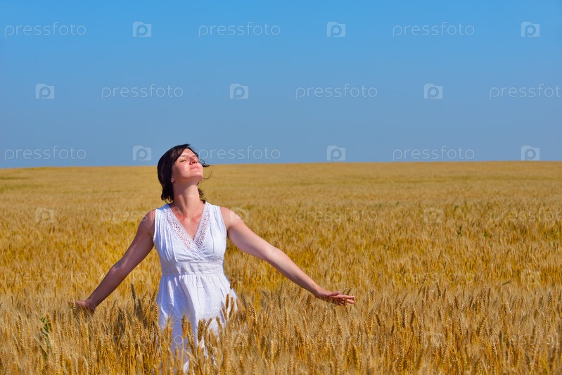 Молодая женщина на пшеничном поле летом