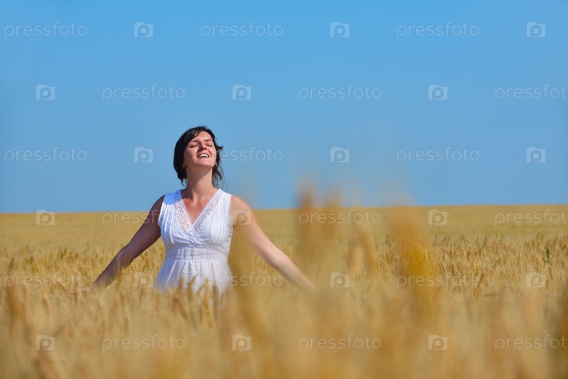Молодая женщина на пшеничном поле летом