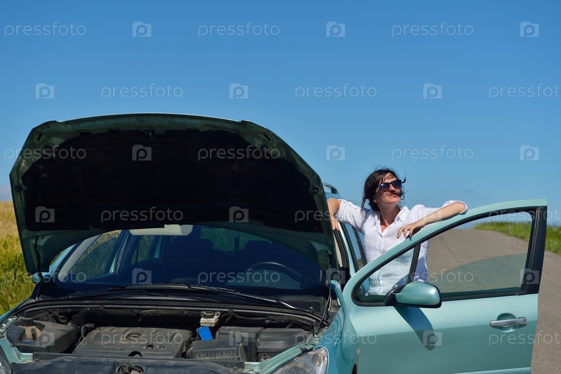 Женщина со сломанным автомобилем
