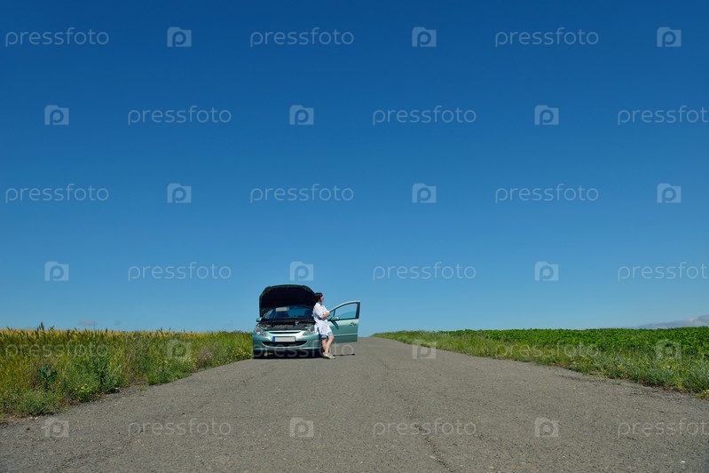 Женщина со сломанным автомобилем