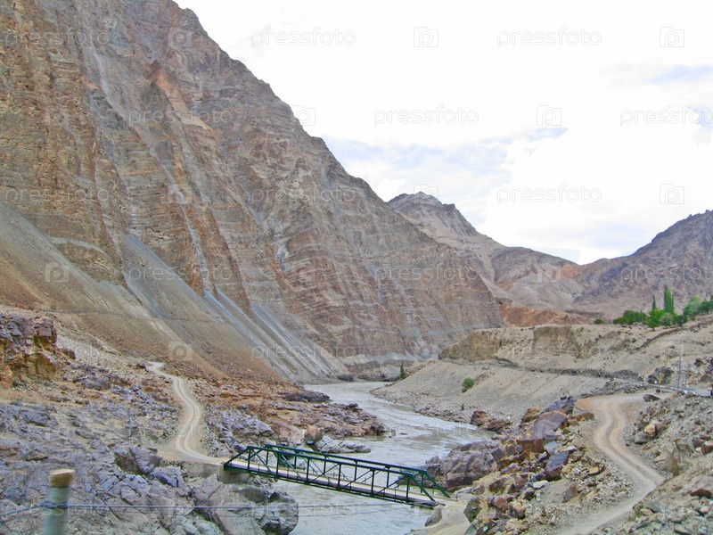 Мост через реку Инд, в горах Ладакха, Индия