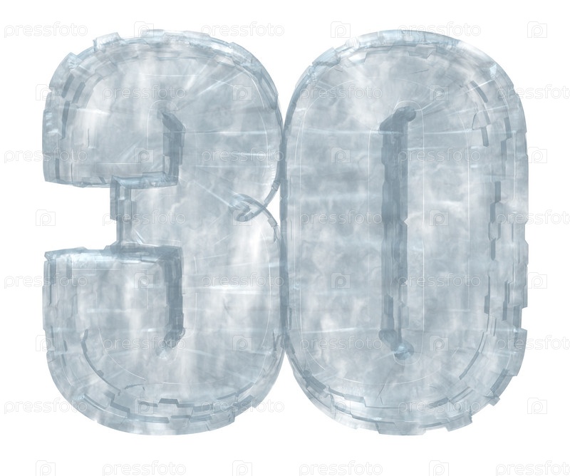 Ледяная цифра тридцать на белом фоне, 3d
