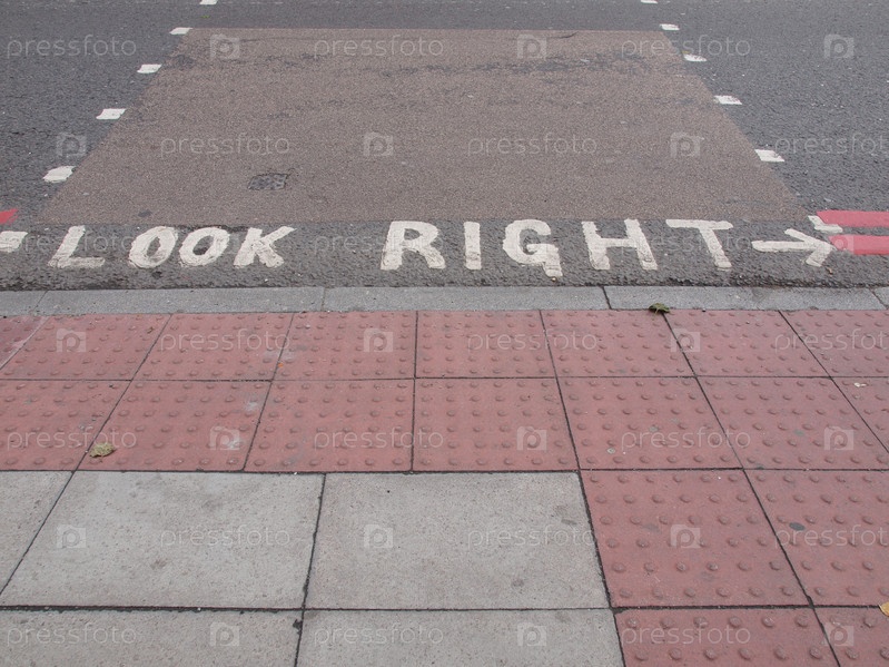 Знак ПОСМОТРИТЕ НАПРАВО на лондонской улице