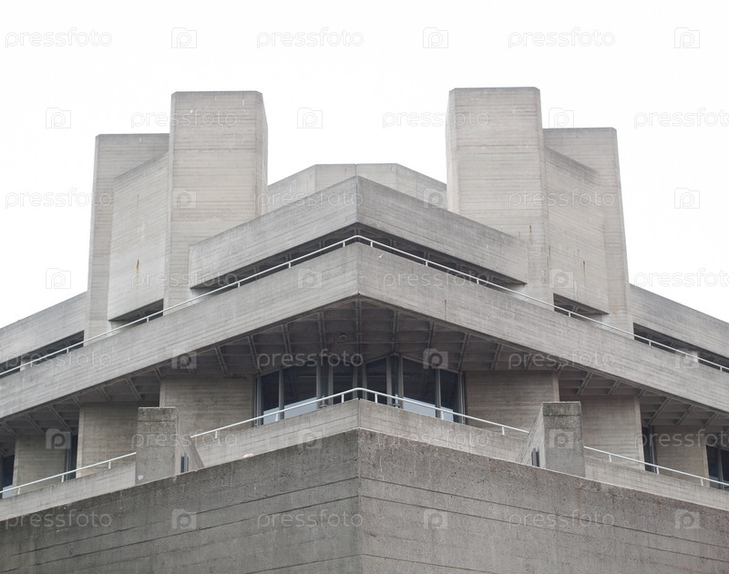 Знаковое брутальное здание Национального театра в Лондоне, Англия, Великобритания, изолированное на белом фоне