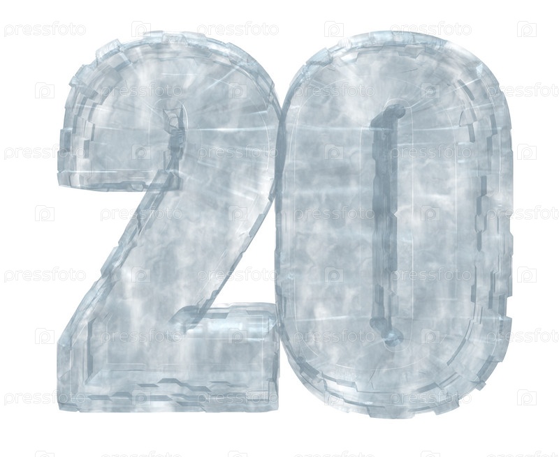 Ледяная цифра двадцать на белом фоне, 3d