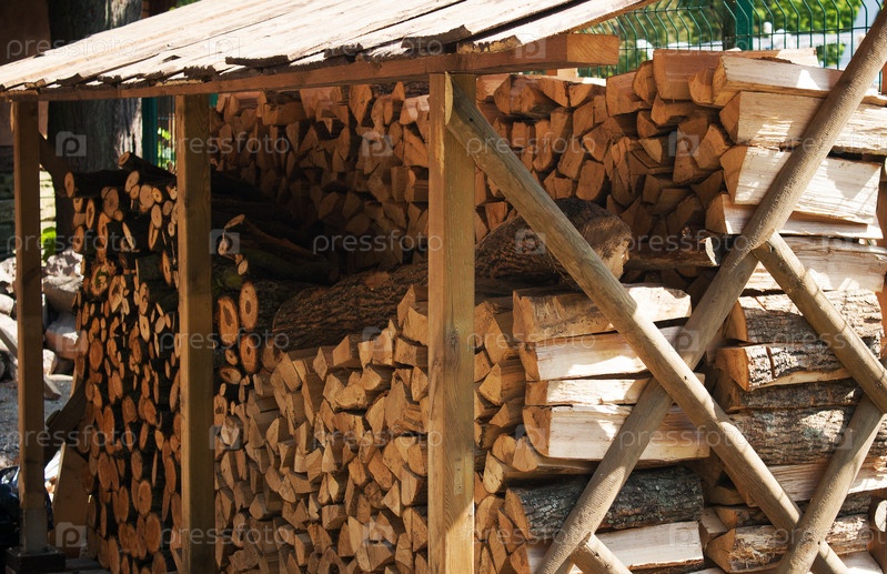 Поленница дров под крышей