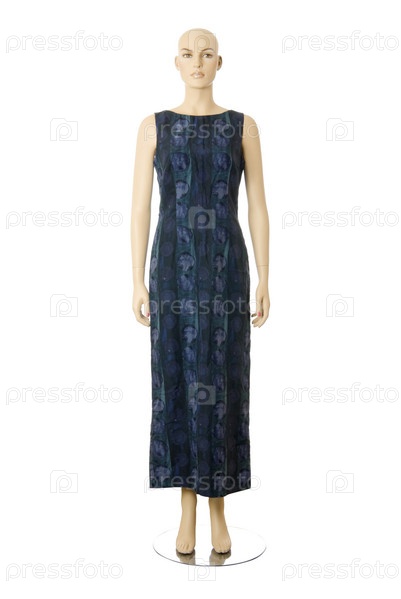 Женский манекен в длинном платье на белом фоне