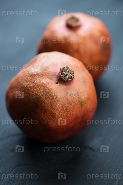 Два спелых граната на черных деревянных досках