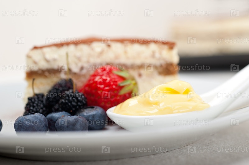 Десерт тирамису с ягодами и сливками
