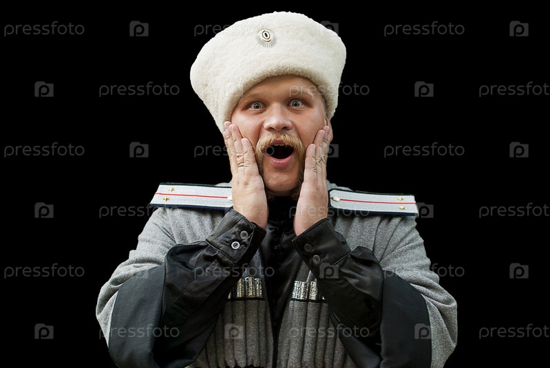 Удивленный молодой мужчина в казацкой одежде