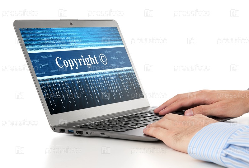 Руки печатают на ноутбуке. Концепция авторских прав
