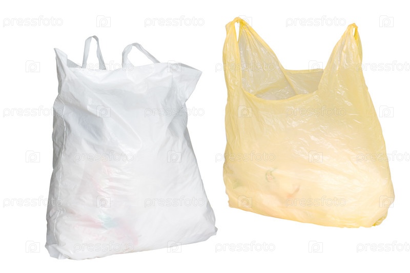 Два наполненных полиэтиленовых мешка на белом фоне