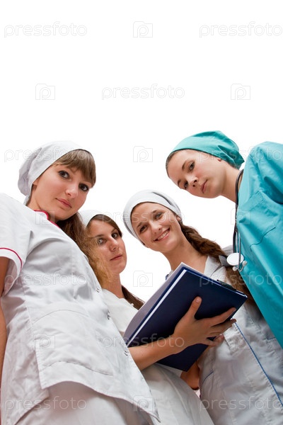 Портрет группы медсестер на белом фоне
