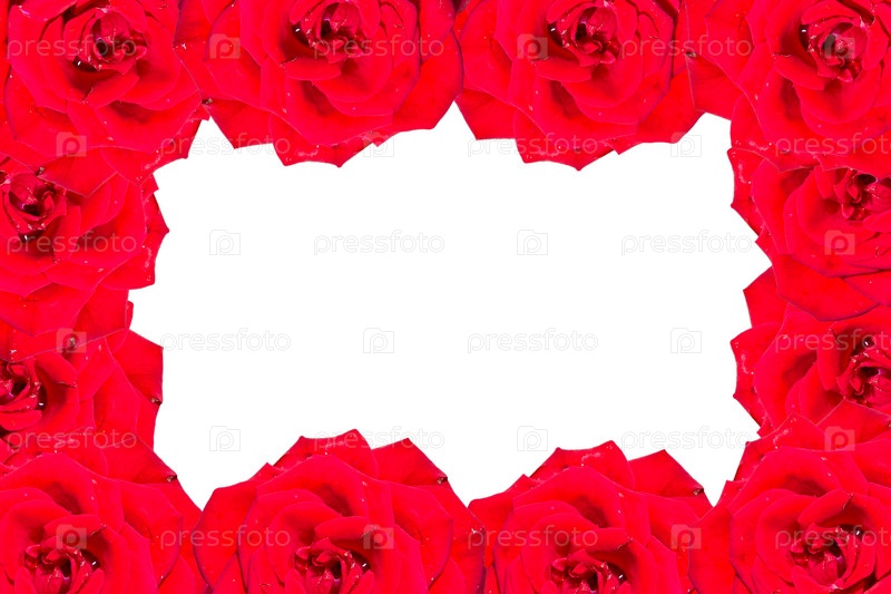 Рамка из красных роз на белом фоне