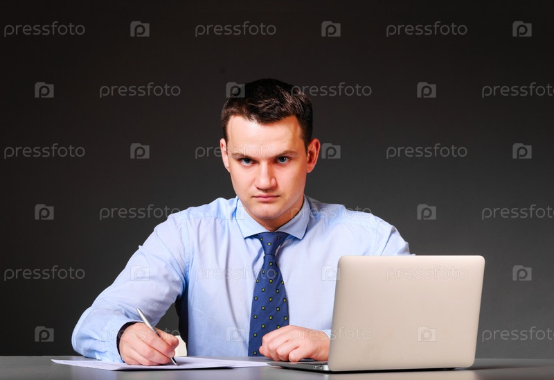 Деловой человек с ноутбуком