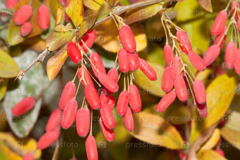 Осенние грозди барбариса крупным планом