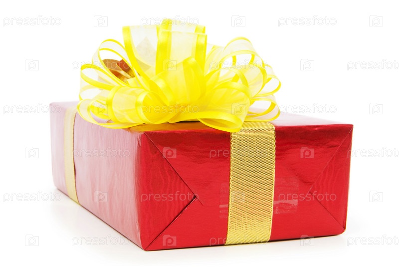 Красная подарочная коробка на белом фоне