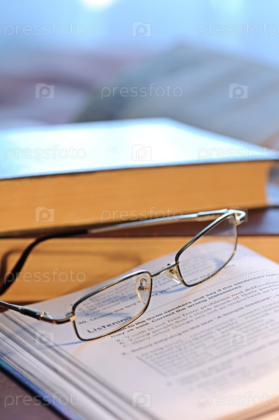 Очки лежат на учебнике