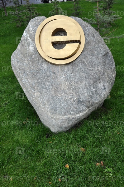 Золотой символ Интернета на камне