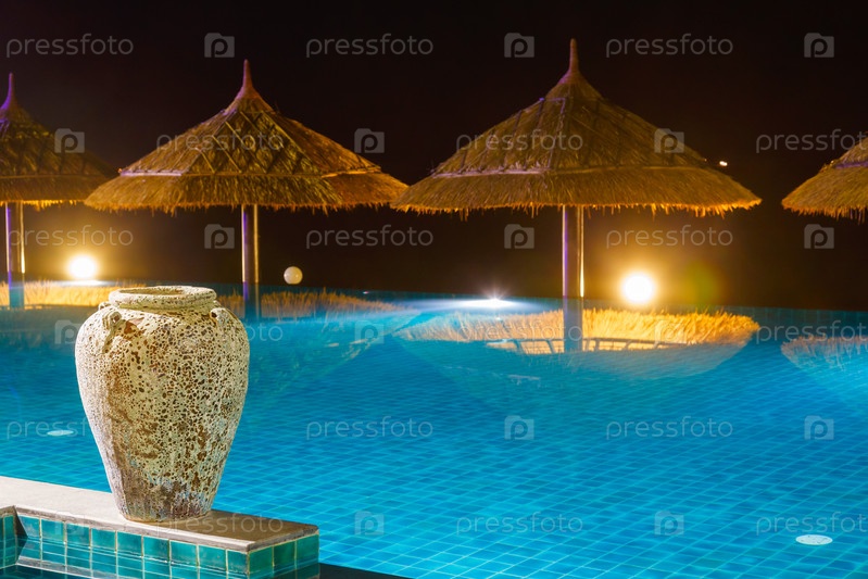 Бассейн с голубой водой и амфора