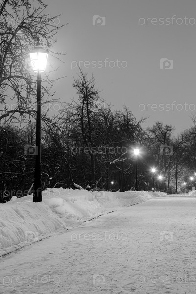 Зимний парк и фонари ночью