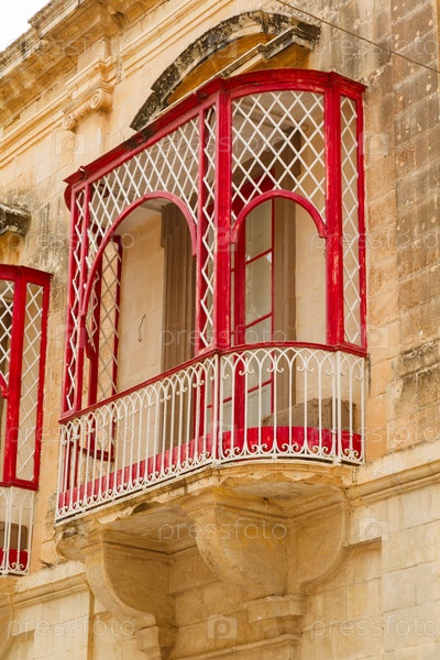 Традиционный красивый декоративный балкон крупным планом