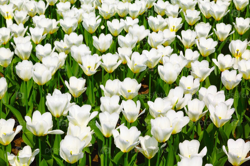 Поле красивых белых тюльпанов весной