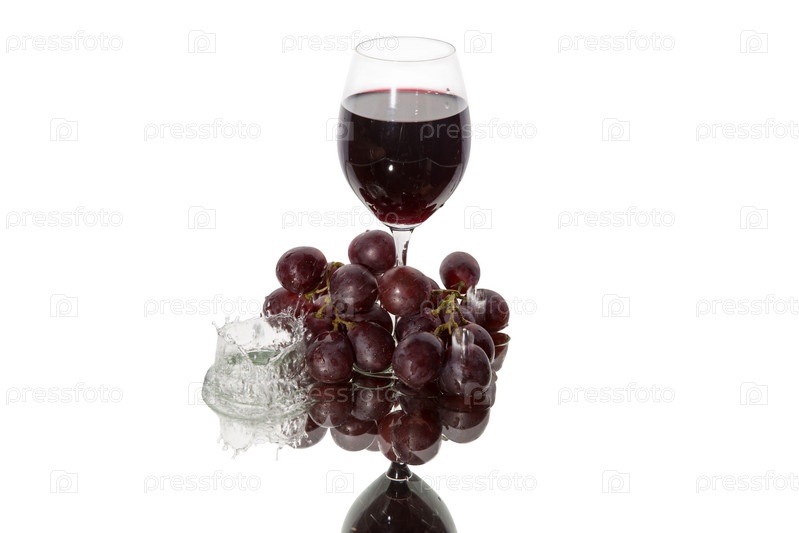 Стакан вина, капля жидкости и отражение