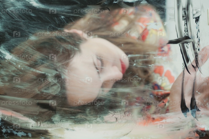 Портрет красивой женщины через грязное стекло