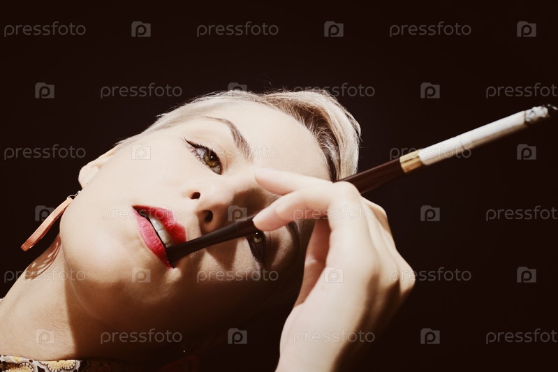 Красивая молодая женщина курит сигарету