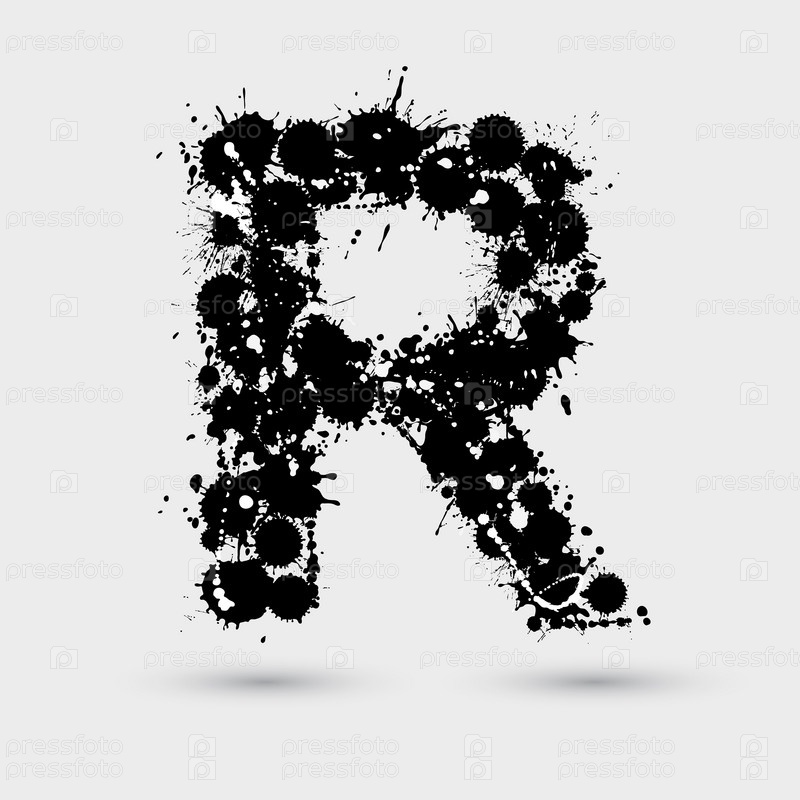 Буква R из чёрно-белых чернильных пятен